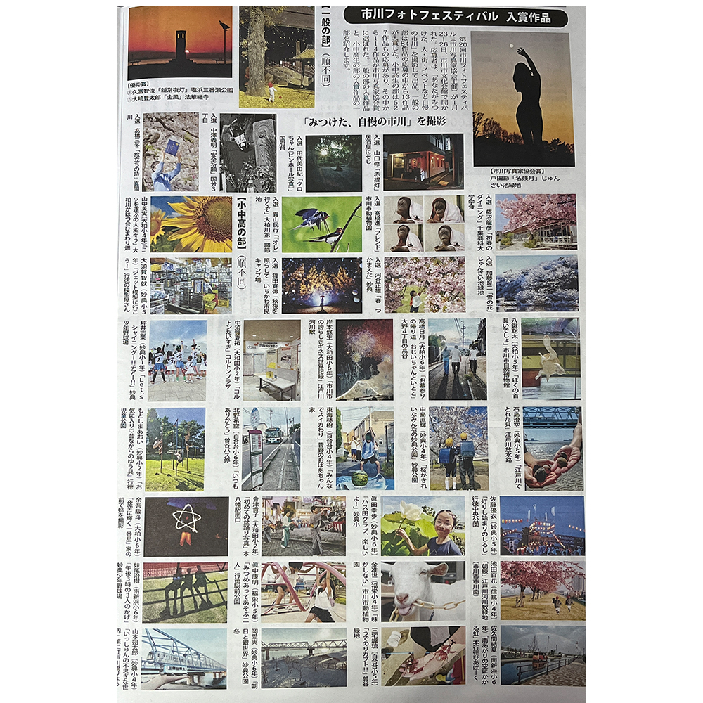 地元情報誌「市川浦安よみうり・まいたうん合併号(3月28日発行)」にて、第20回市川フォトフェスティバルの入選作品をご紹介いただきました。